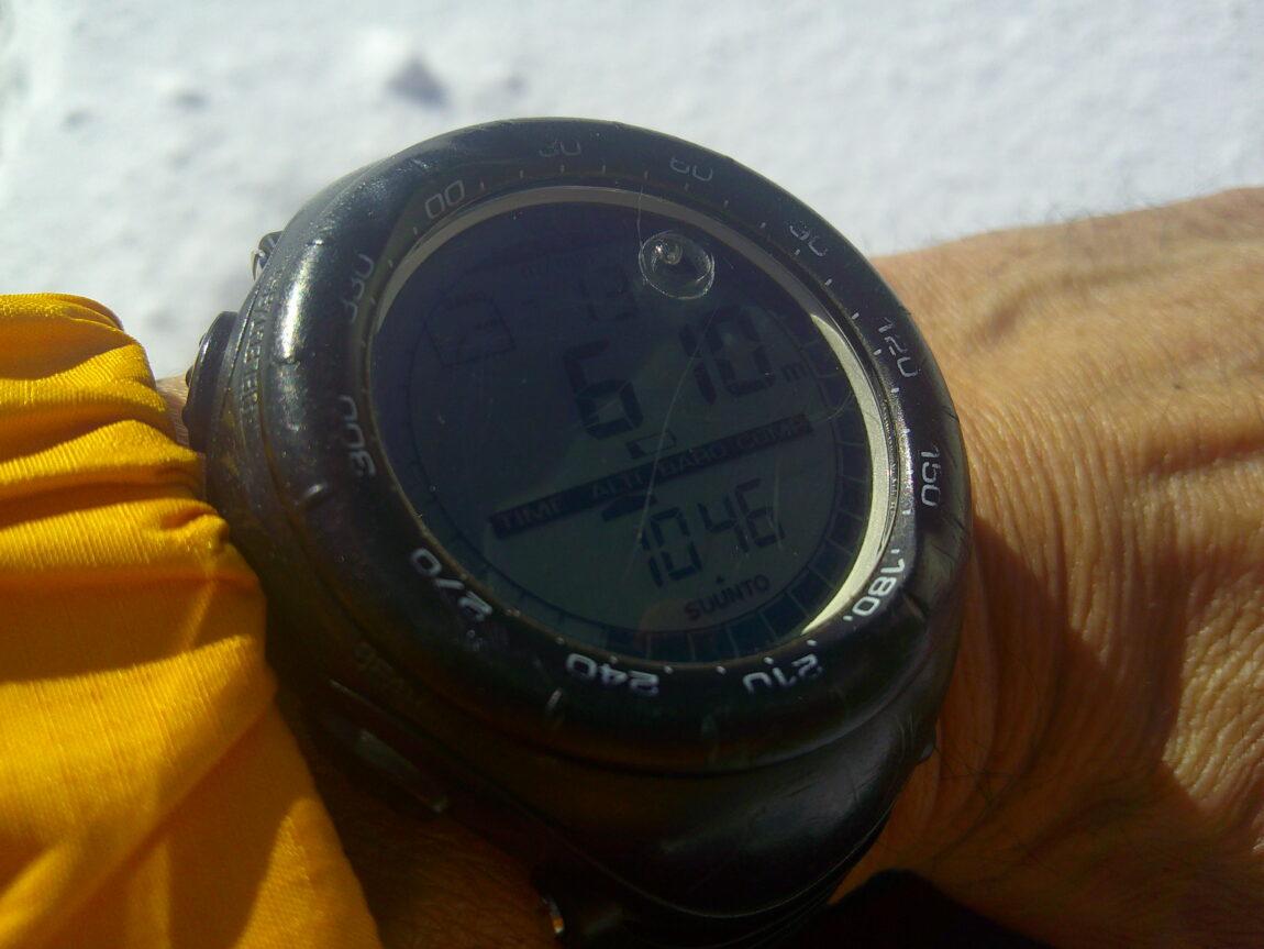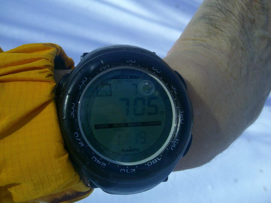まず、登山口で高度計を610mにセット
