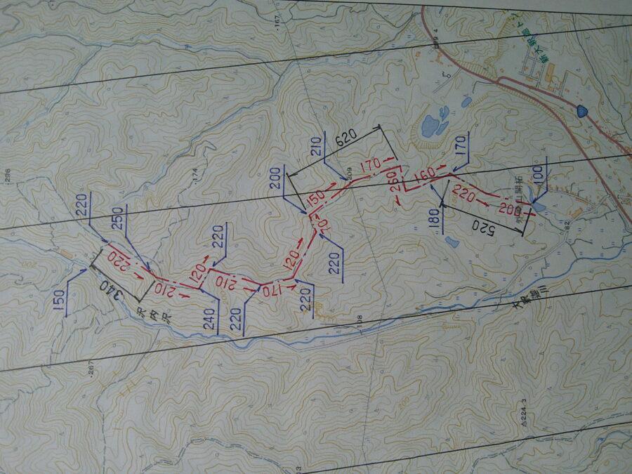 ここから標高250mの変化点目指して、コンパスは220度です。