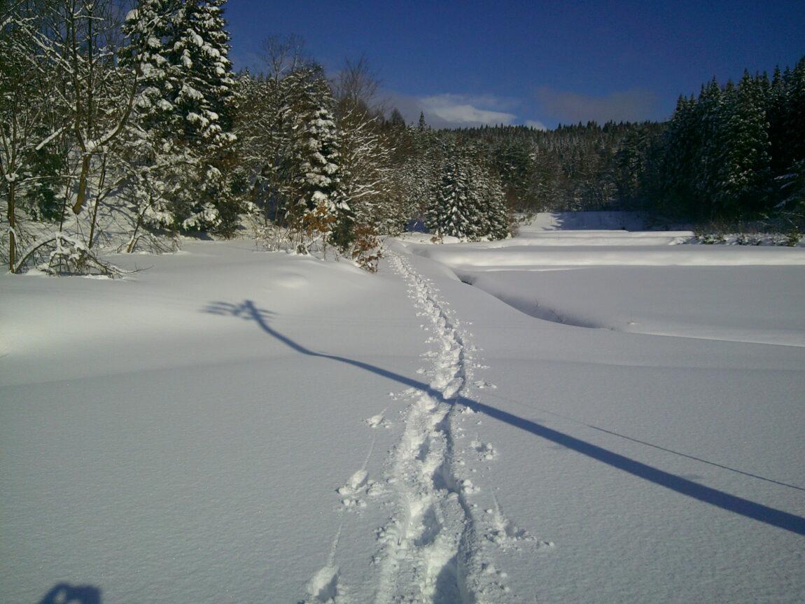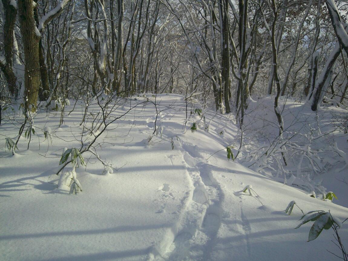 このコース、変化点のほか、あちこちにピンクテープがついていました。沢山の方が歩いているようです。本日は積雪が少なく、所々でササや雑木が顔を出して、越えるのに難儀する部分もありましたが、積雪が十分になった頃、再度、歩いてみたいと思います。