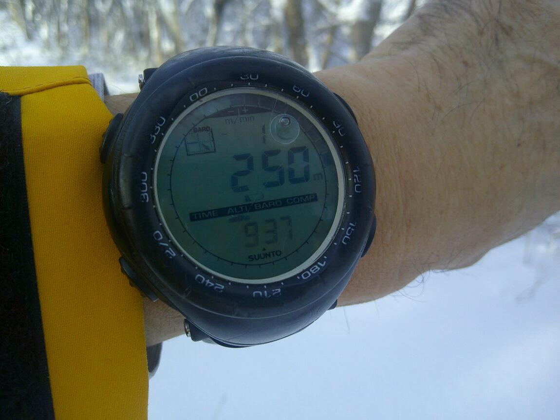 手元の高度計は標高250mを示しています。ここから、進路210度で次の変化点である標高240mを目指します。