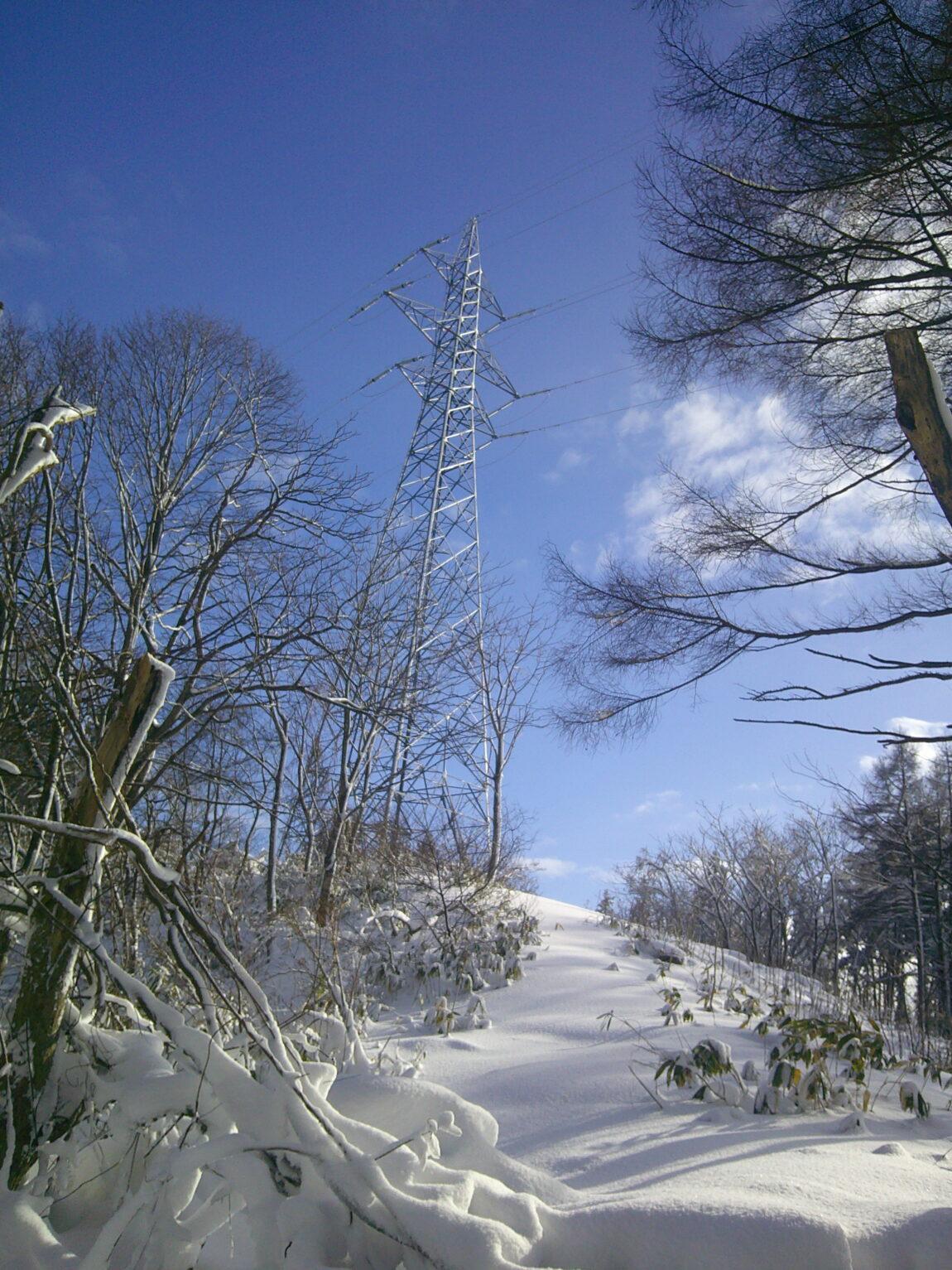 尾根上を歩いていて、頭上に高圧線があれば、その現在地が、地形図の高圧線と尾根が交差する位置であると特定することができます。