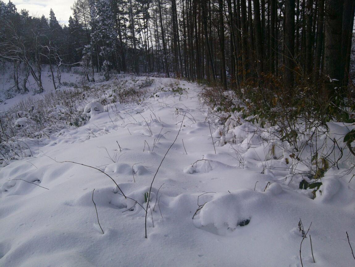 現地は伐採跡地となっており、伐採に利用した作業道らしきものが明瞭に確認できます。