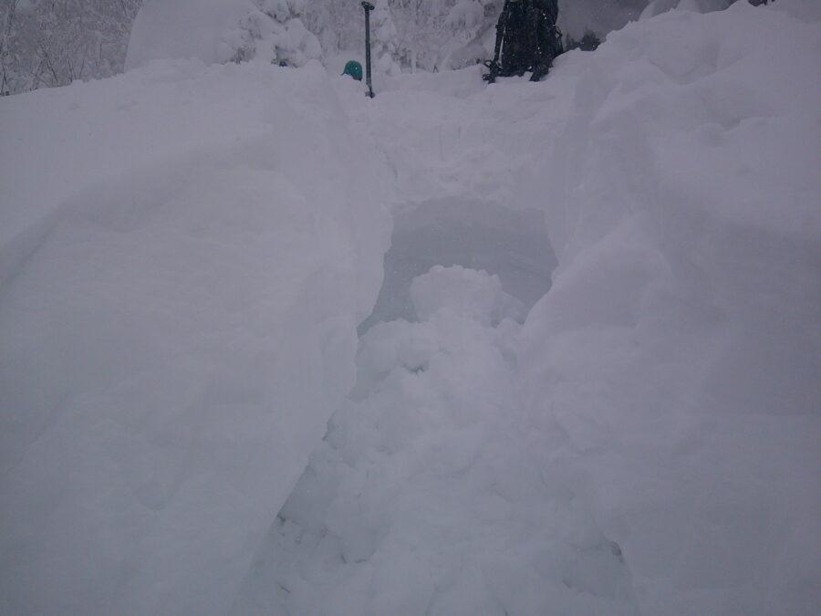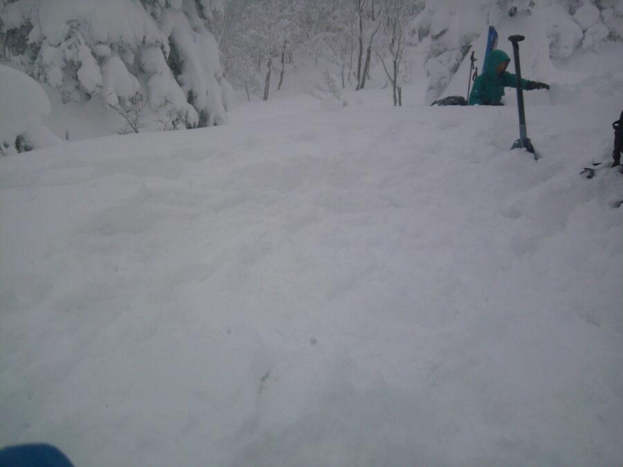 新雪、パウダースノーのため、スキーの後、ブーツで圧雪します。