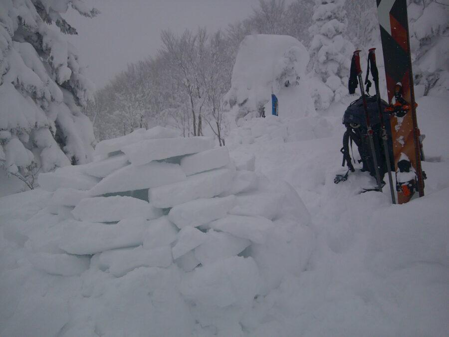 粉雪で屋根を積むのに苦労しましたが、1mほど掘り下げると薄い雪の板が採れるようになりました