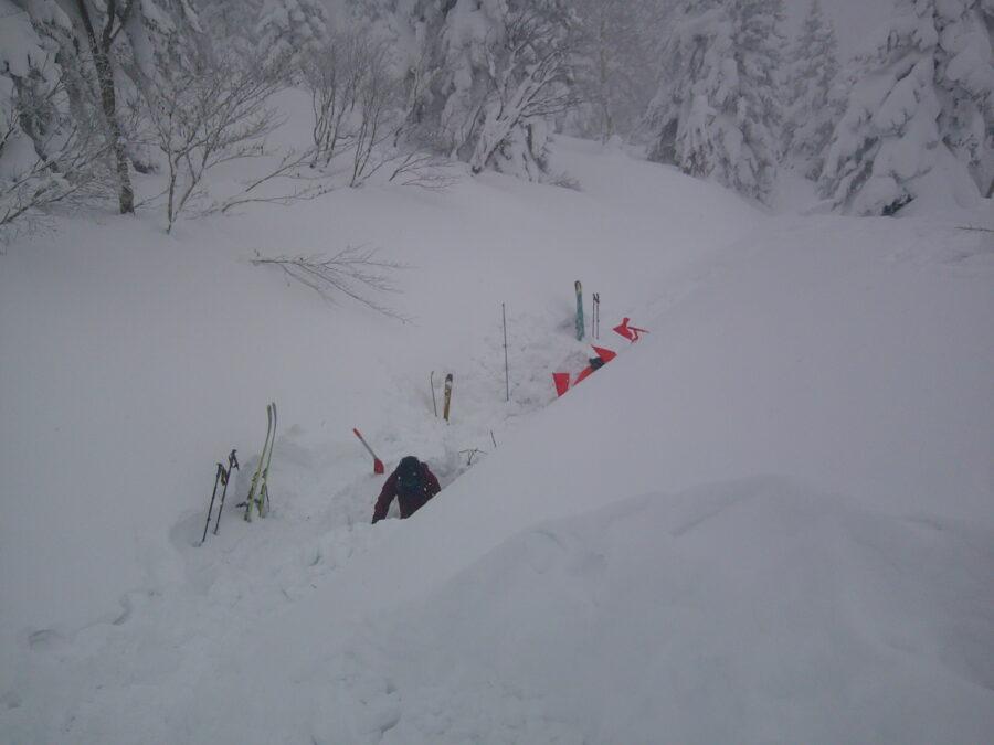 1月4日(土)、八甲田の大岳環状指導標No.30付近で、堀込式イグルや雪洞の築造演習を実施しました。
