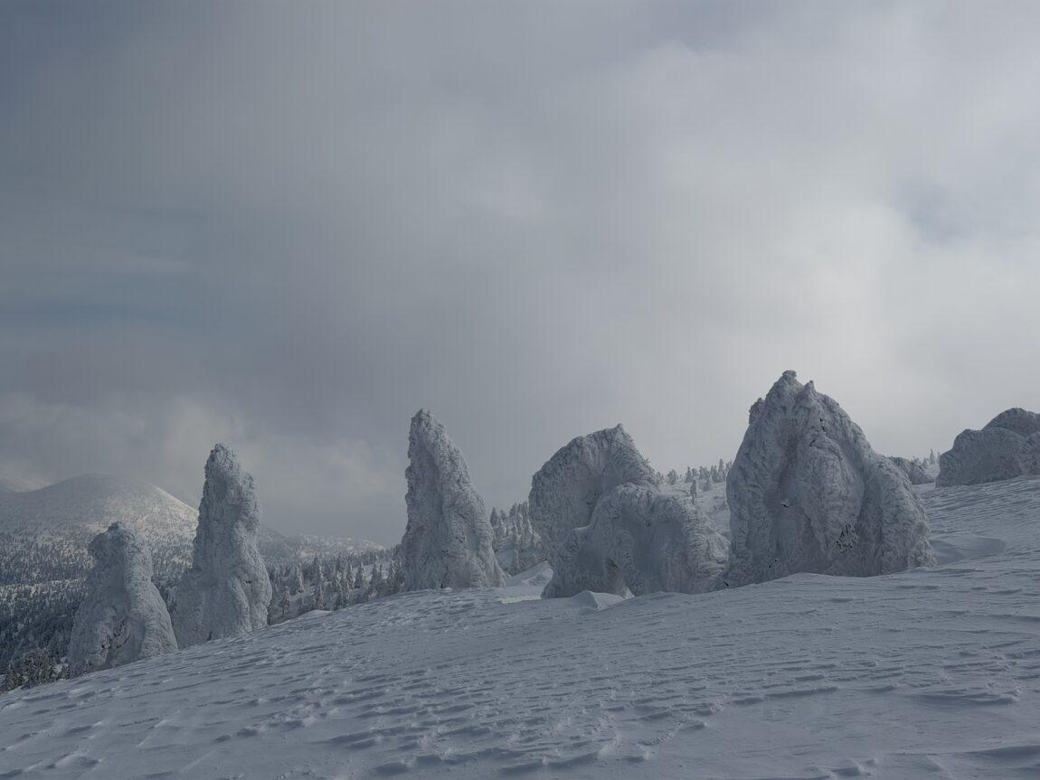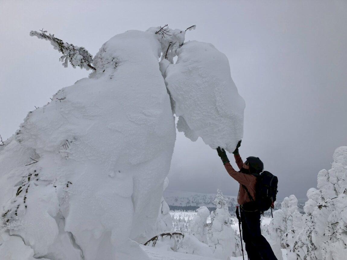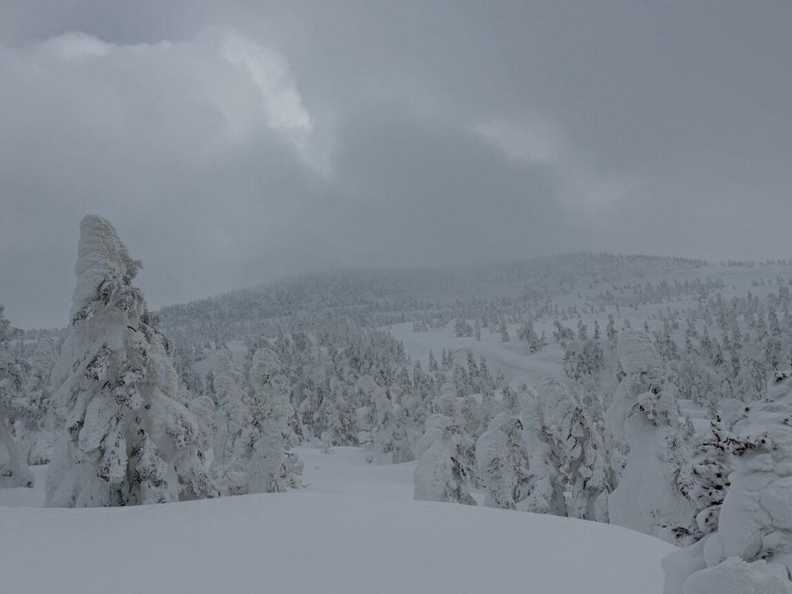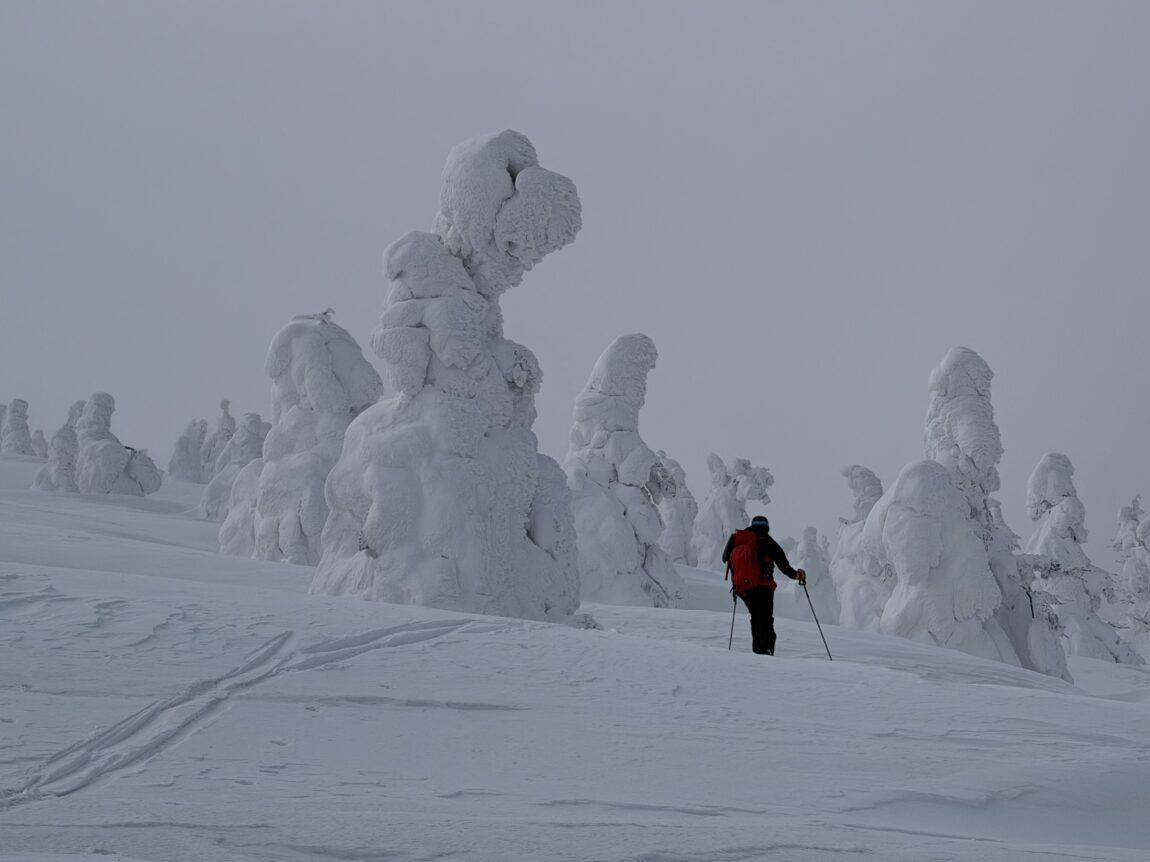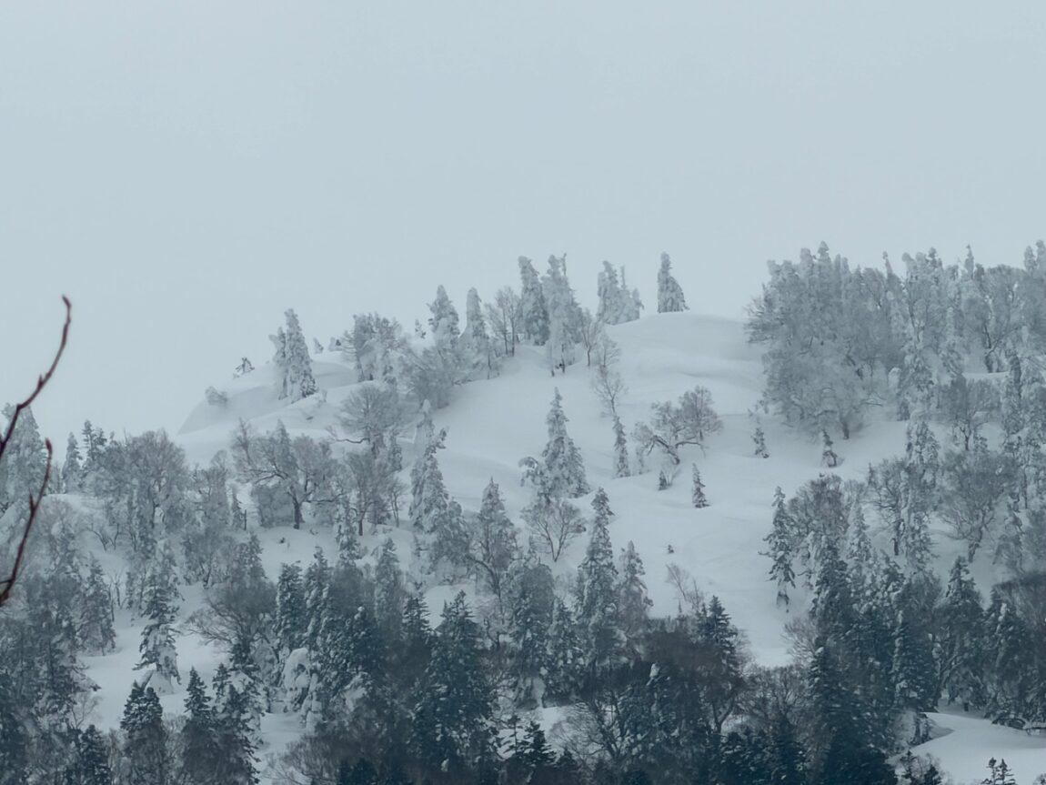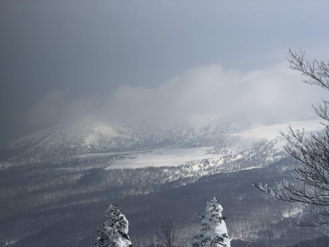 ラッセルというほどの新雪はなかったですが、サクサクと先頭を交代しながら進みます。みんな当たり前にコンパス歩行して良い感じ。O谷さんは最後までGPSを見ずに、ホワイトアウトや細かいアップダウンも何のそので、ばっちりの場所に皆を導いてくれました。