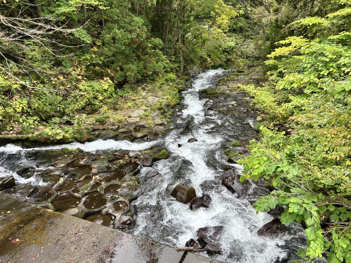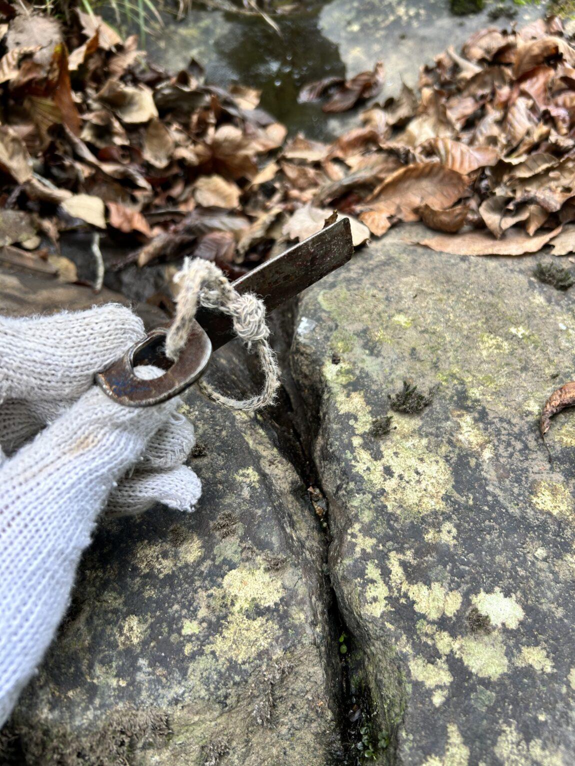 寒水沢大滝を見学したら、Oさんおすすめの石畳のような河原?でハーケンを打つ練習をしました。