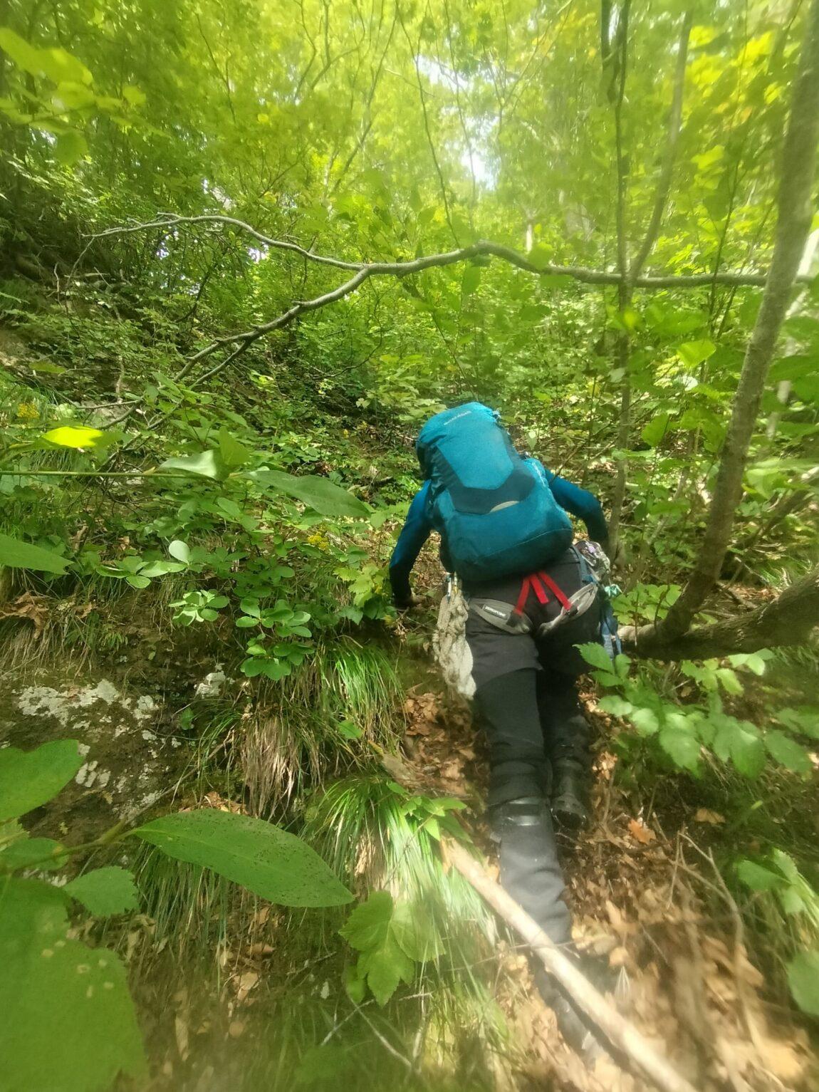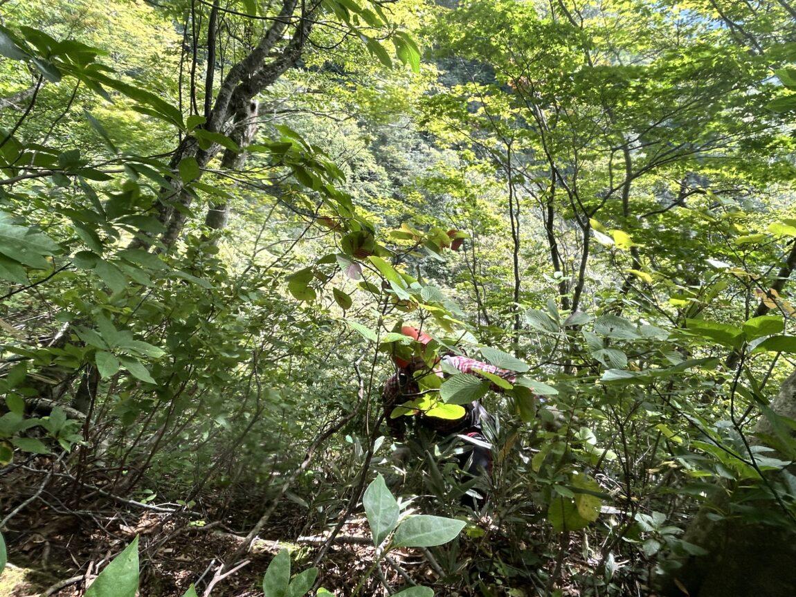 M君「ここは左股で以前えらい目に遭いました」O谷「そっちは崖だろう。今日は右へ入って最短ルートで尾根を目指すぞ」などと普通に会話している。タイゾーさんもわかっているのかいないのか、持ち前の筋肉でなんとかするつもりなのか、平然としていた。