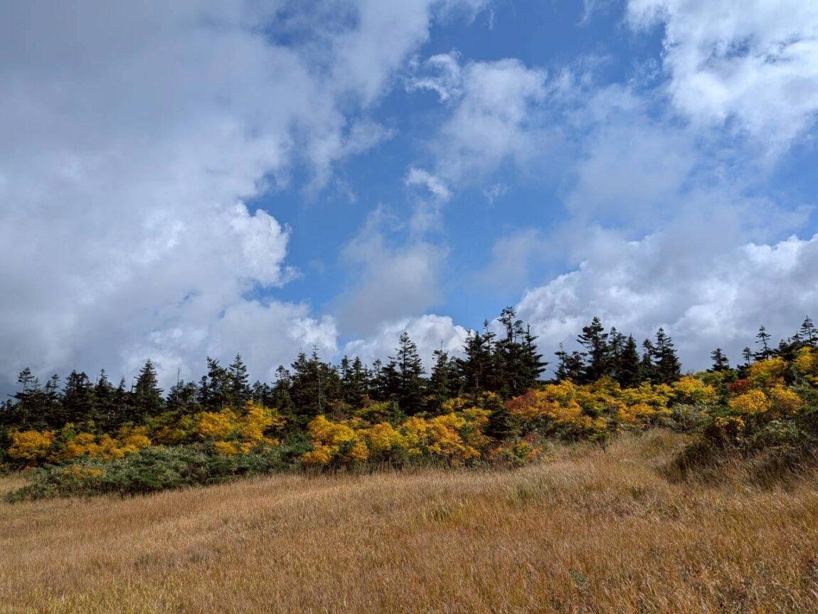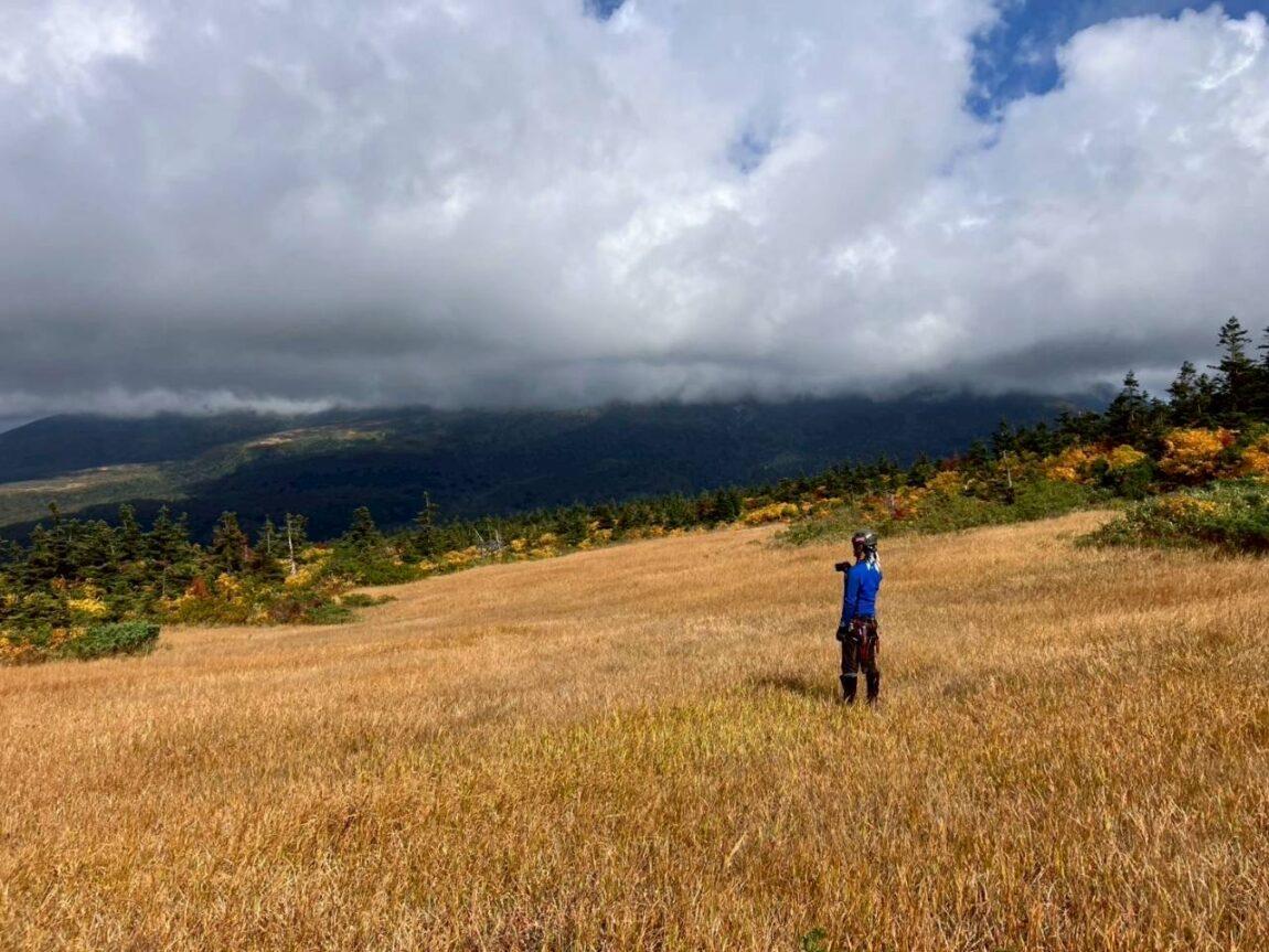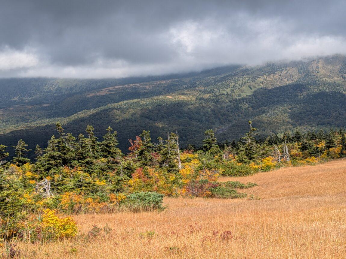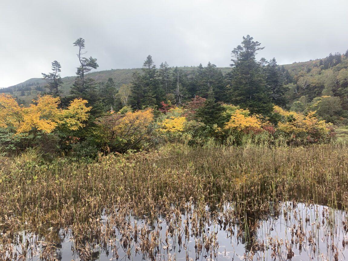 くの字湿原到着 ^^)   雲が残念ですが秋の気配プンプン