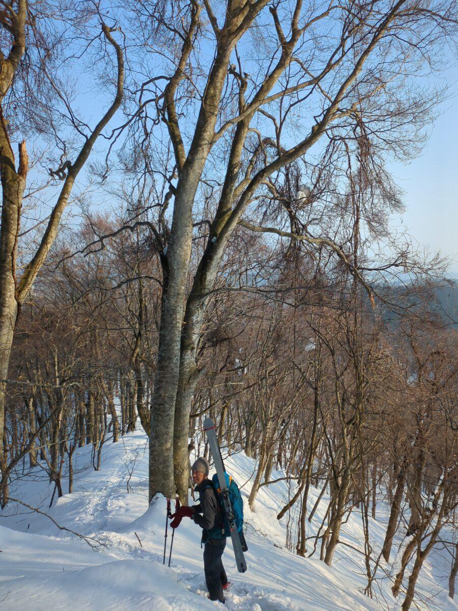 昨シーズンから、厳冬期の八甲田でテント泊をしたいという方々と、目標を定め、それに向けてメニューを考えながら歩くことが多いのですが、たまには、のんびり里山を歩こうぜ、とばかりに、気心が知れ、足並みがそろうO女史と、笹山めざしてスノーハイキング。