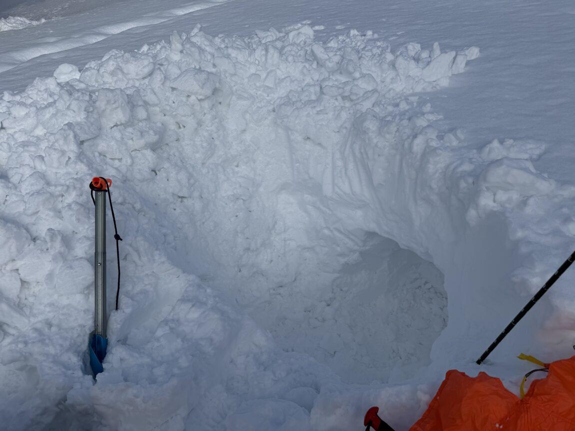 プローブを刺すと積雪深は170cmでした。これだけあれば十分色々やれそうです。