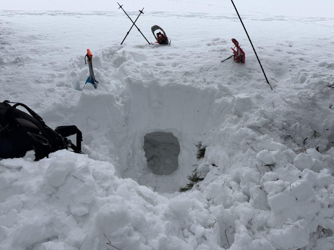 積雪期のガイド検定項目のひとつに、緊急時ビバークを想定したシェルター(自分含め2人収容)を30分で作る。というものがあります。今回はその練習です。